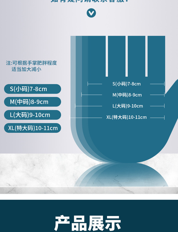 - Specifications and models: Standard blue nitrile gloves S size