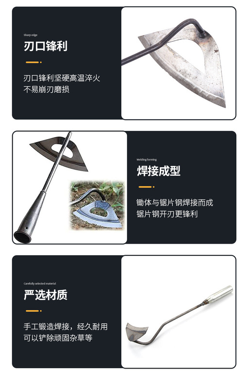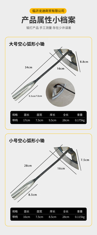 - Specifications: Extended (about 34*16) hollow arc-shaped small hoe with iron handle 10 pcs/handle 300 pcs/piece