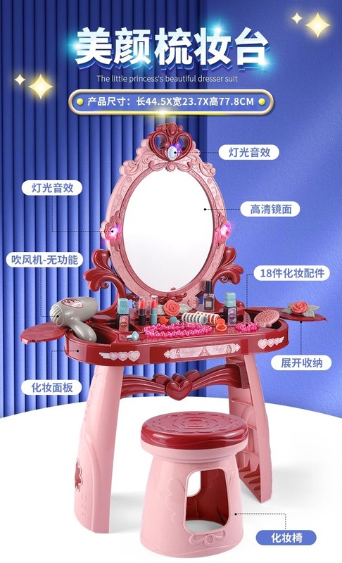 - Features: Luminous high-definition mirror with storage function and stool