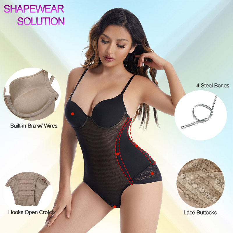 - Shapewear with bra: 4-piece steel frame bra