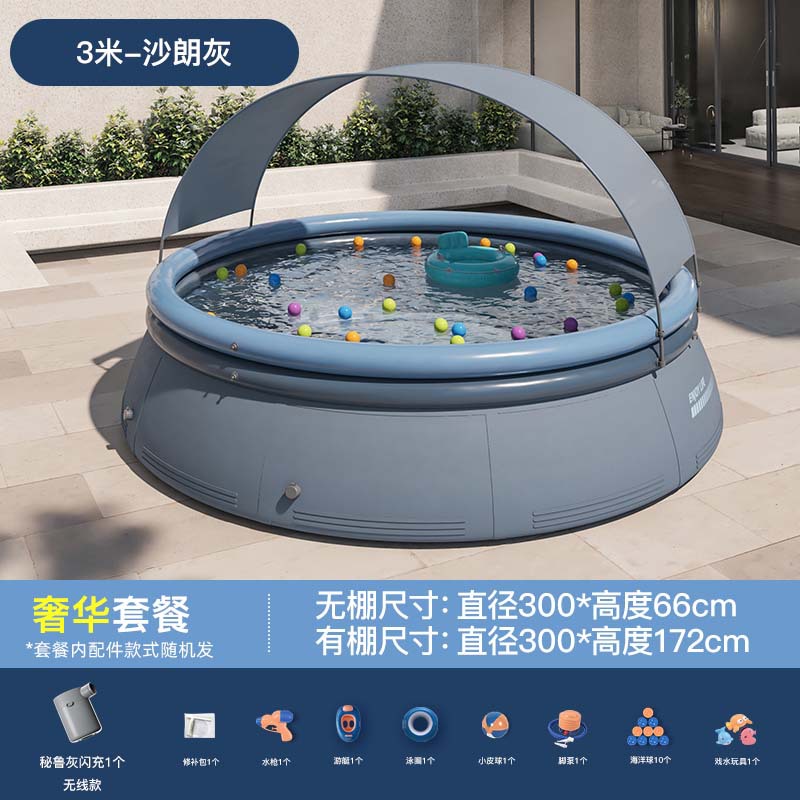 - Specification: 3-meter Shalang Gray Tent Swimming Pool [Basic Package] Peru Gray Wired Core Flash Charging