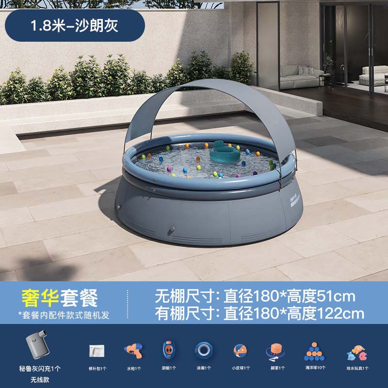 - Specification: 1.8-meter Shalang Gray Tent Swimming Pool [Enjoy Package] Peru Gray Wireless Core Flash Charging