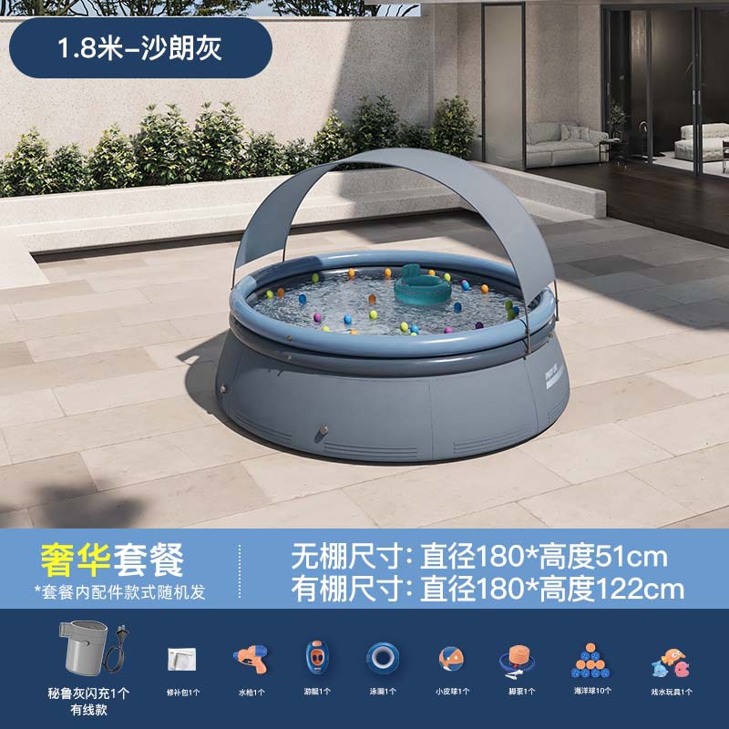 - Specification: 1.8-meter Shalang Gray Tent Swimming Pool [Enjoy Package] Peru Gray Wired Core Flash Charging
