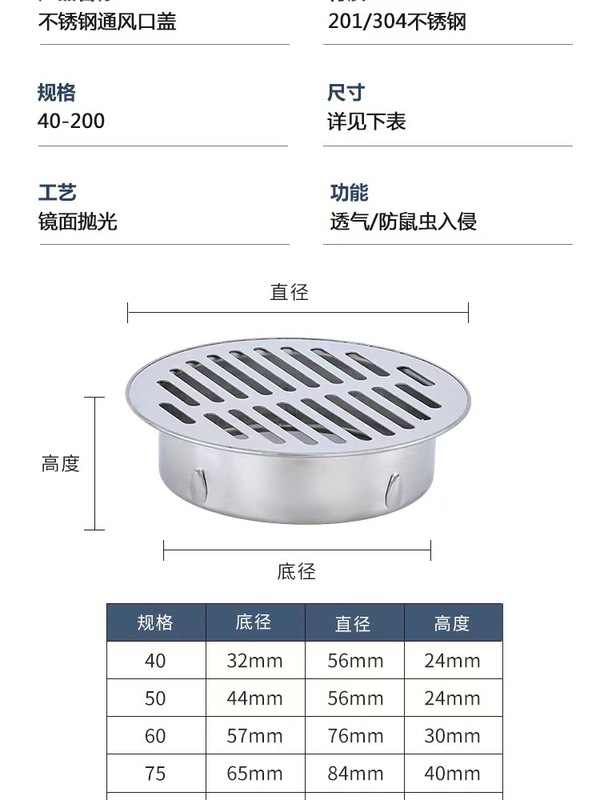 - 規格:304*PM-PVC40管蓋