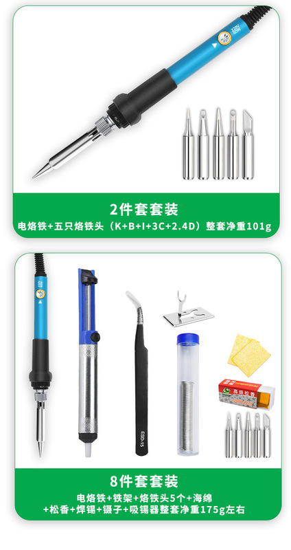 - Model: Temperature-adjustable soldering iron [220V medium standard] two-piece set: electric soldering iron + 5 soldering iron tips (KBI3C2.4D) temperature adjustment
