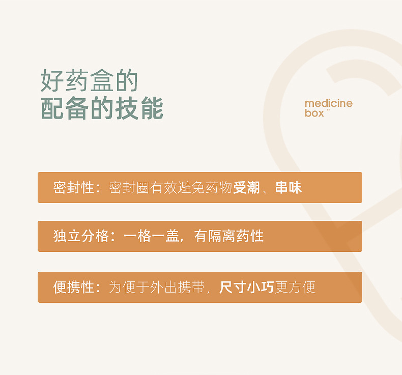 - Specifications: 8-compartment pill box - cream white