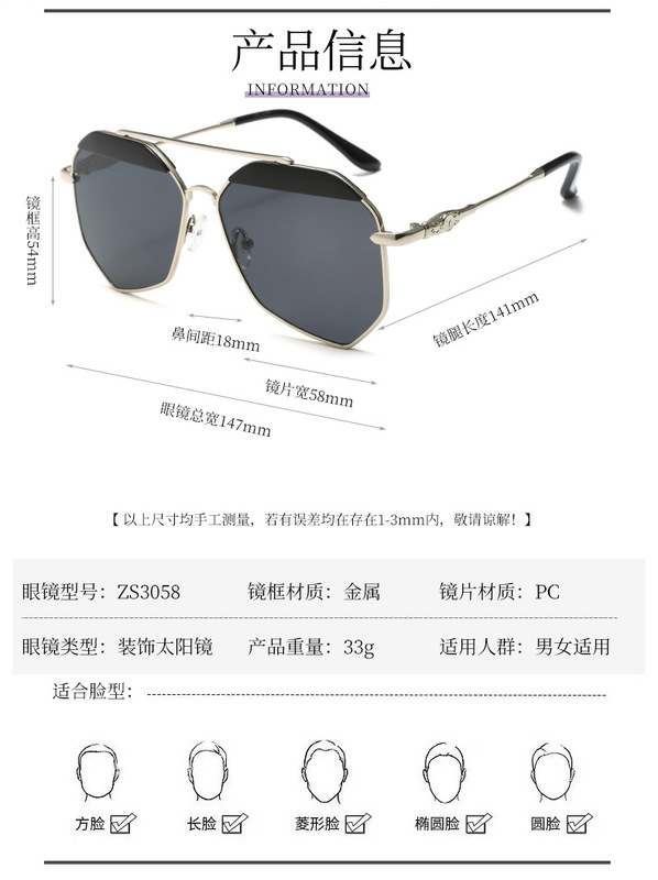 - 眼鏡款式:蛤蟆鏡