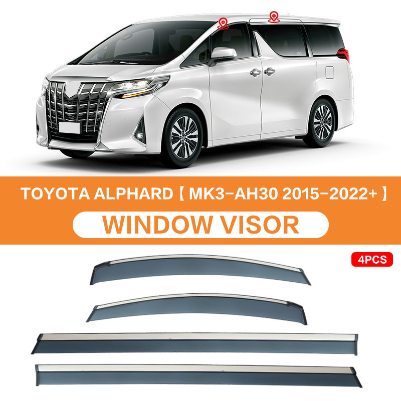 - Specifications: Toyota Alphard [MK3-AH302015-2022+] PC stainless steel bright strips window rain shield [all with bright strips]