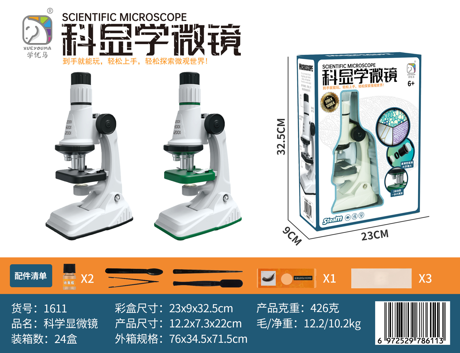 - Specifications: Scientific microscope (1611 large) two-color mixed