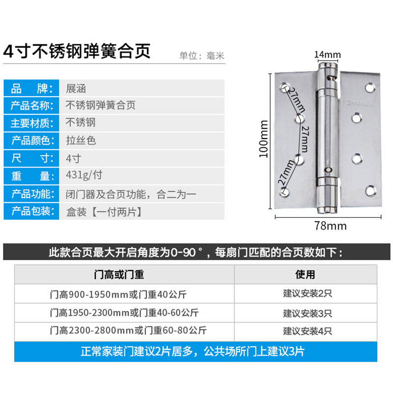 - Specifications: 4-inch hinge (one pack)