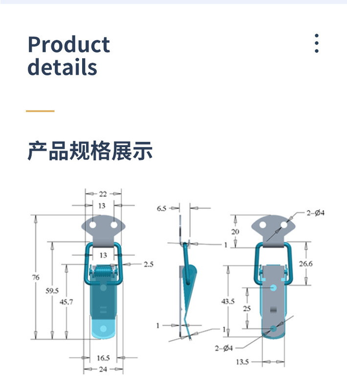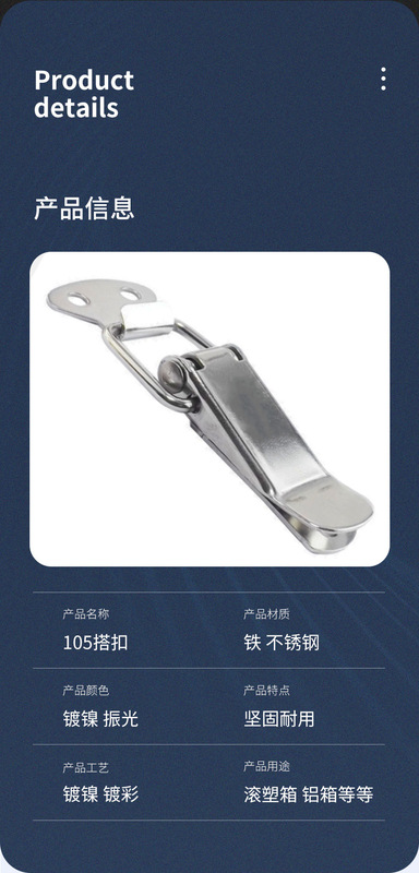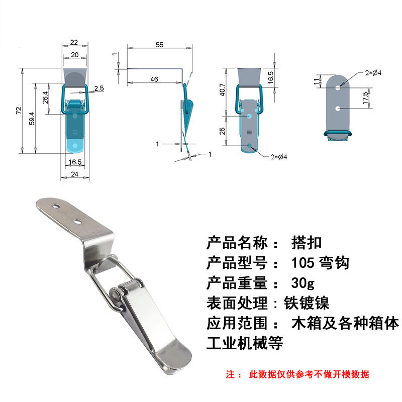 - Specifications: 105 hook (stainless steel 304)