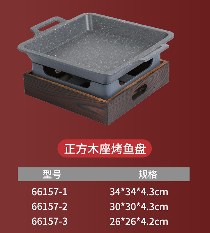 - Grill/plate specifications: Wooden base quality square grilled fish stove 22*22*3.7CM