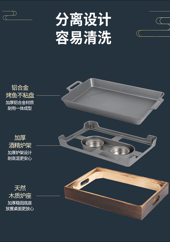 - Grill/plate specifications: Wooden grilled fish stove 42*29*4.2CM