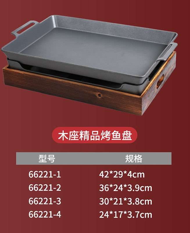 - Grill/plate specifications: Wooden grilled fish stove 30*22.5*4CM