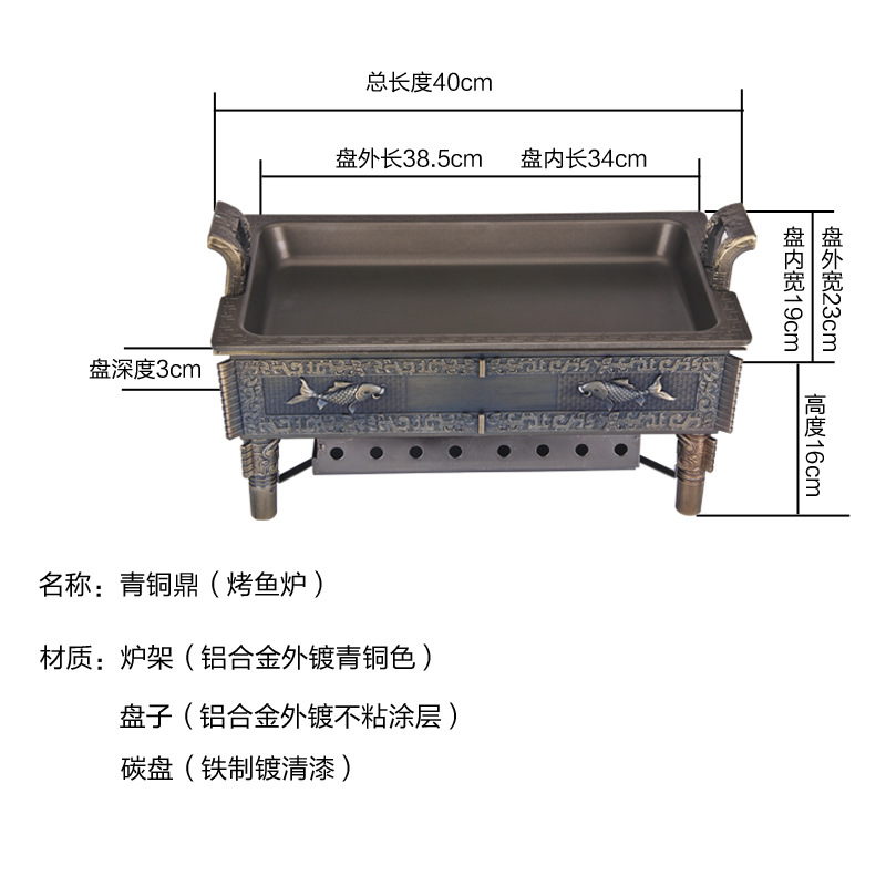 - 規格(長*寬*高):古鼎青銅烤魚爐38*23CM1-2斤魚