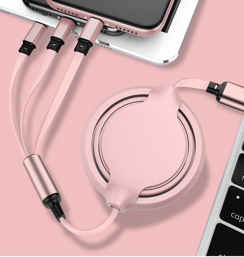 【商品名稱】馬卡龍一拖三伸縮數據線