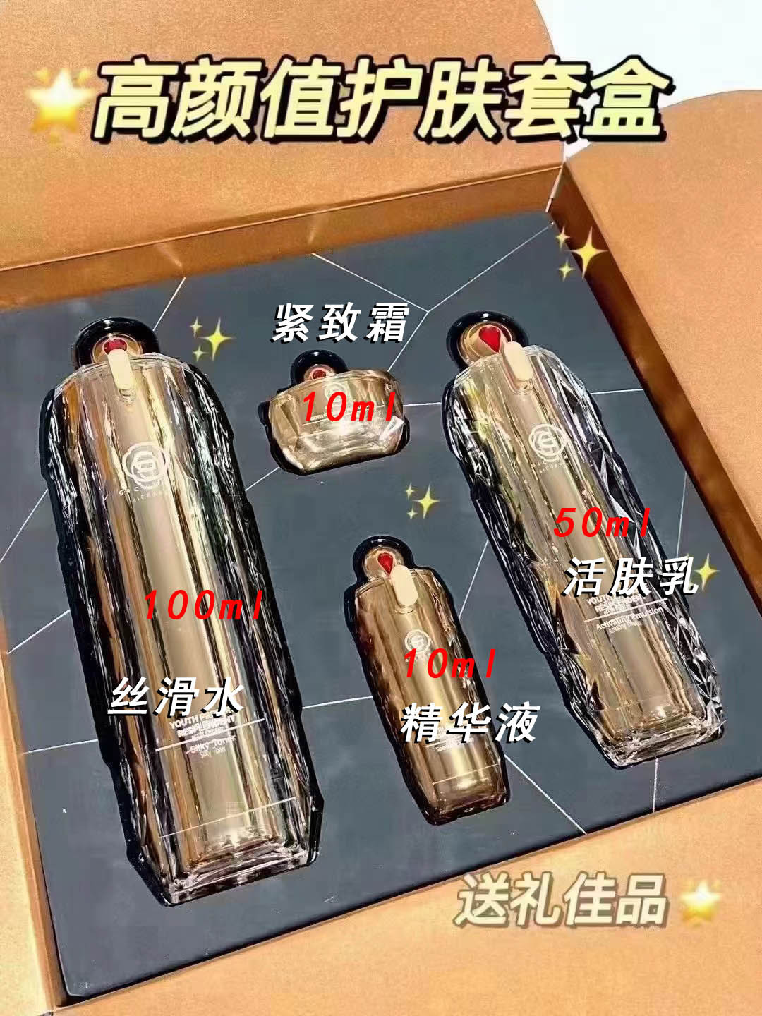 - Product Specification: Facial Cleanser, Toner, Moisturizer, and Essence Liquid Set - Brilliance Gift Box