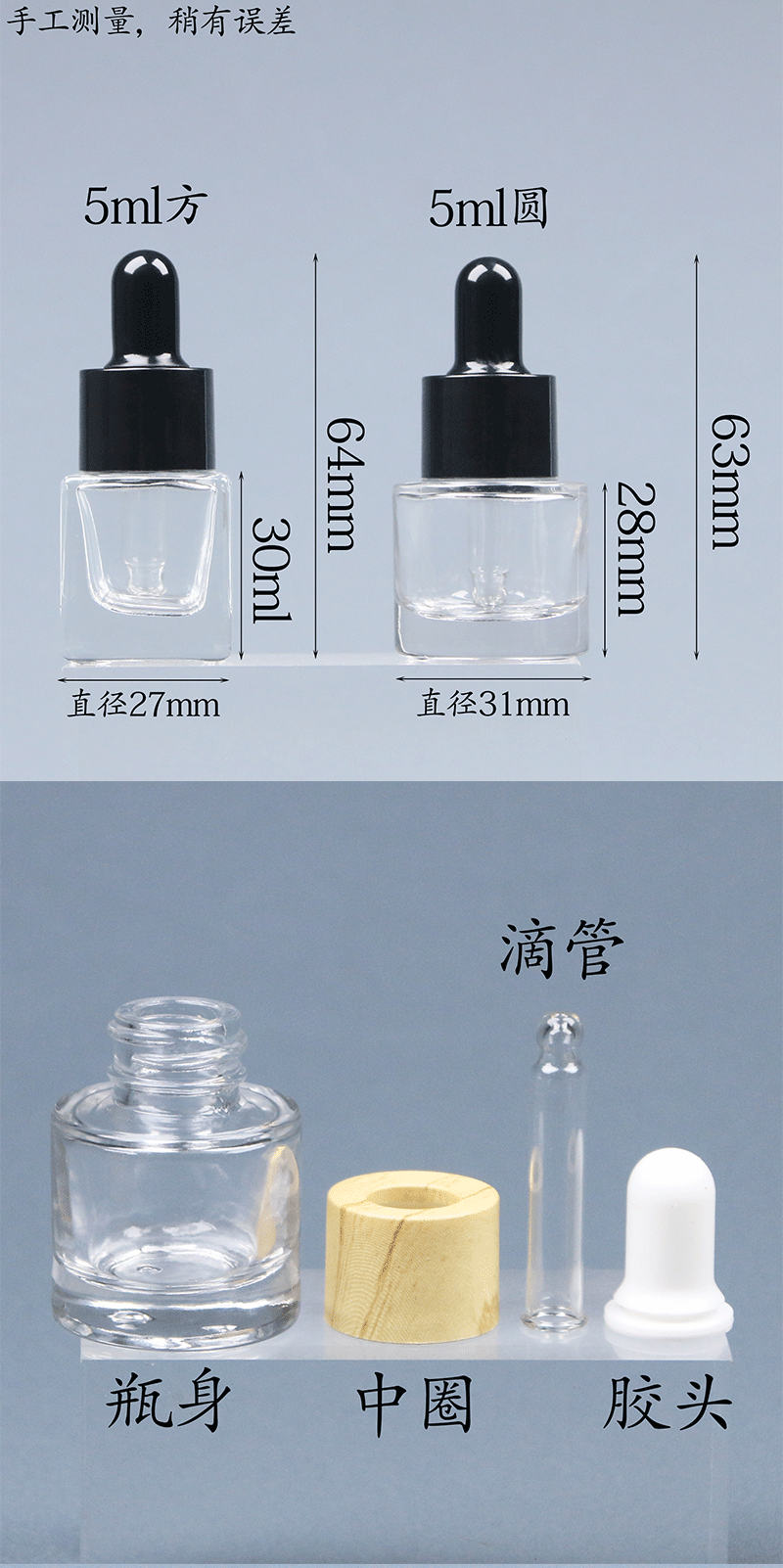 - 相關配附件:瓶身,玻璃,膠頭,滴管