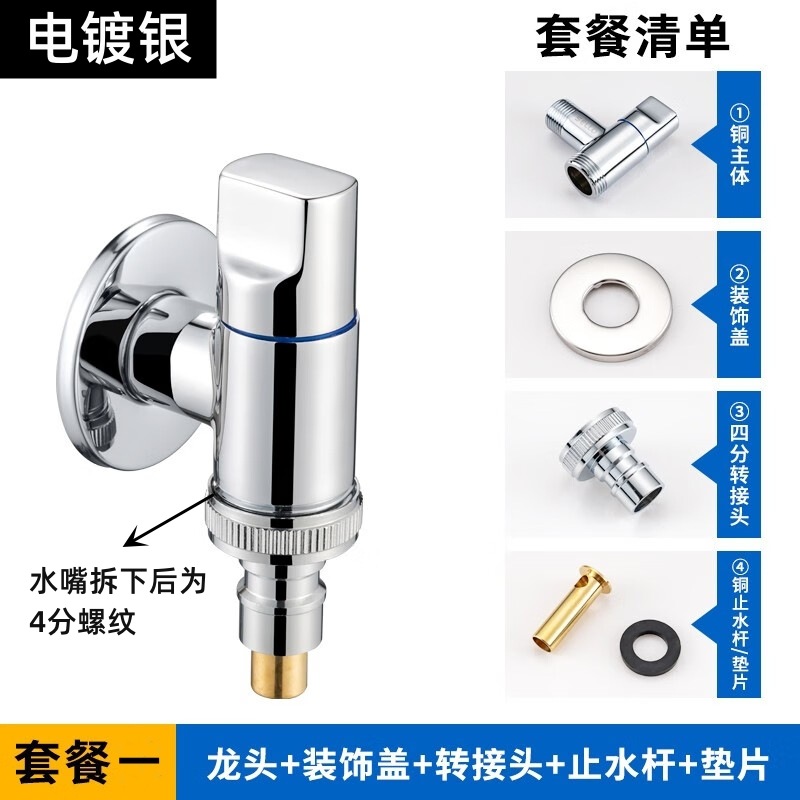 - Specifications: Electroplated silver/copper faucet - 4-point thread (with 4-point spout + copper water stop rod)