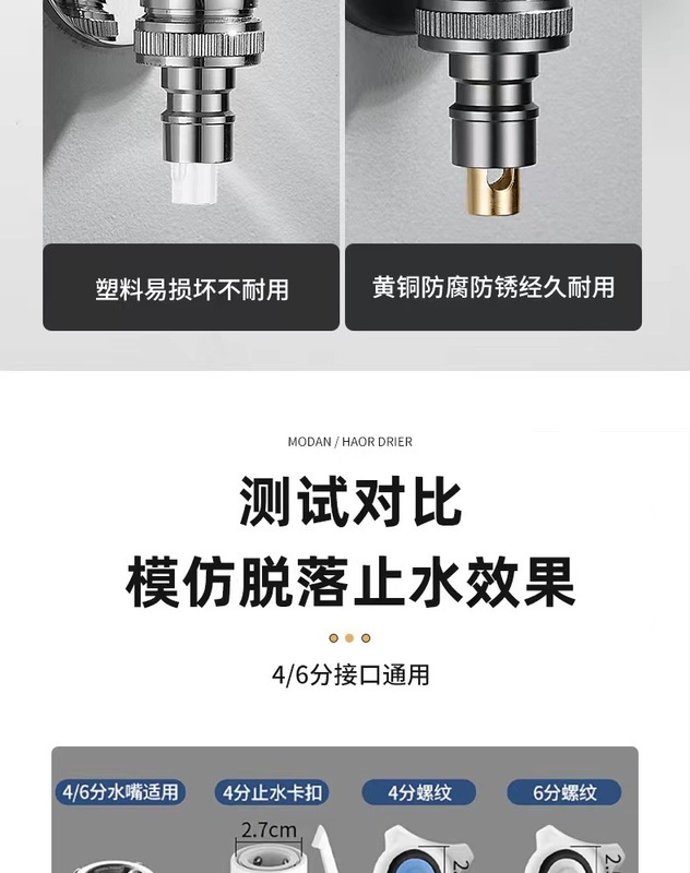 - Specifications: Electroplated silver/copper faucet - 6-point thread (with 4-point spout + copper water stop rod)