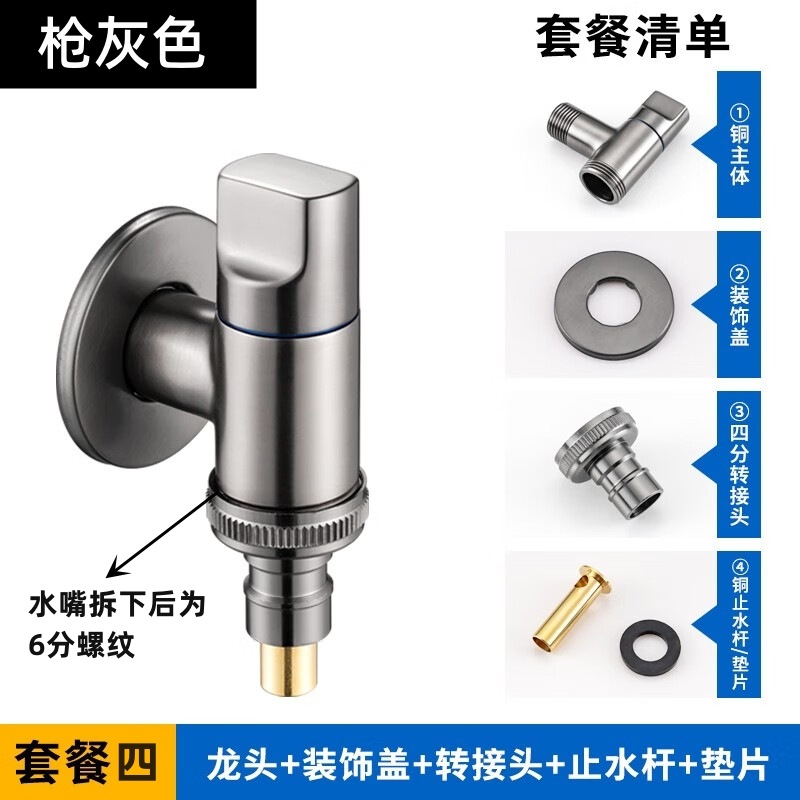 - Specifications: Gun gray/copper faucet-6 points thread (with 4 points faucet + copper water stop rod)