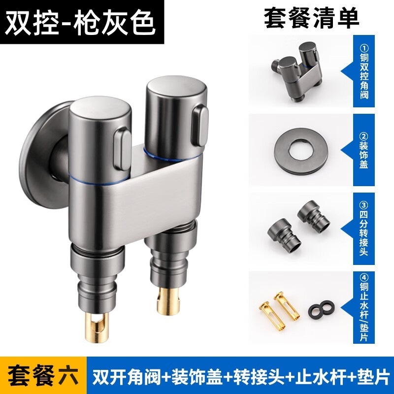 - Specifications: gun gray/dual-control copper faucet (with 4-point spout + copper water stop core)