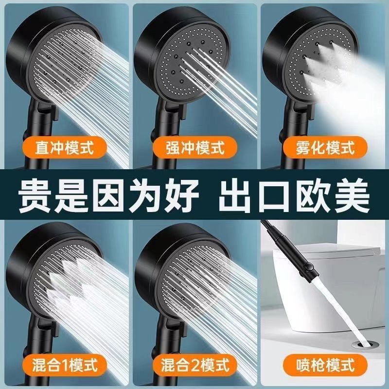 - Specification: 5-Stage Pressure Shower Head - One-Touch Water Stop (with Filter Core) - Black