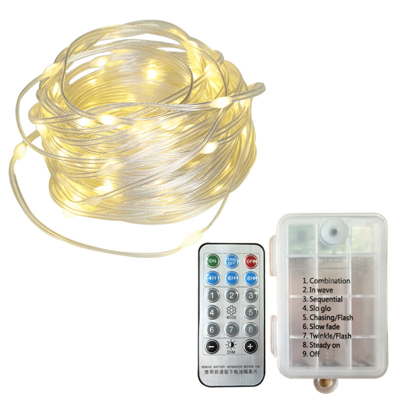 - 功率:皮線-10米100燈-電池盒八功能+遙控款