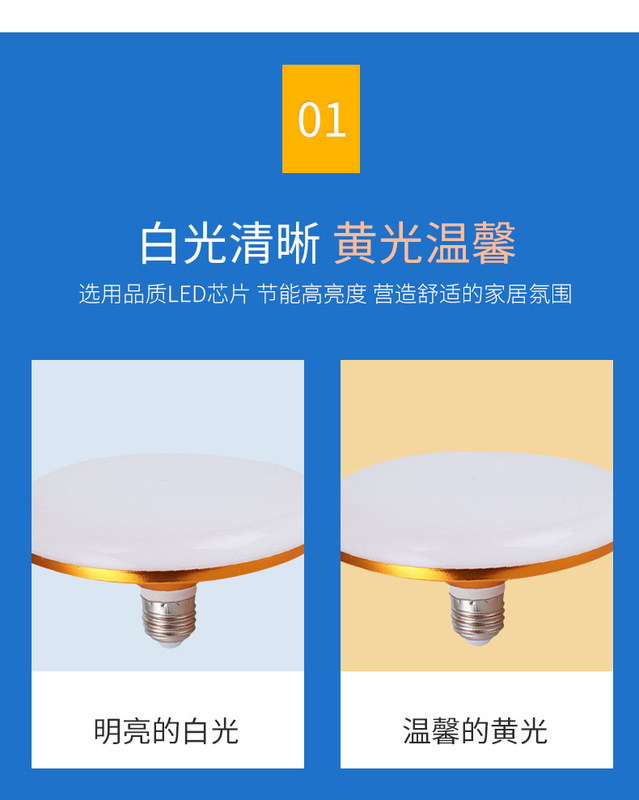 - 色溫:E27螺口飛碟金色盒裝