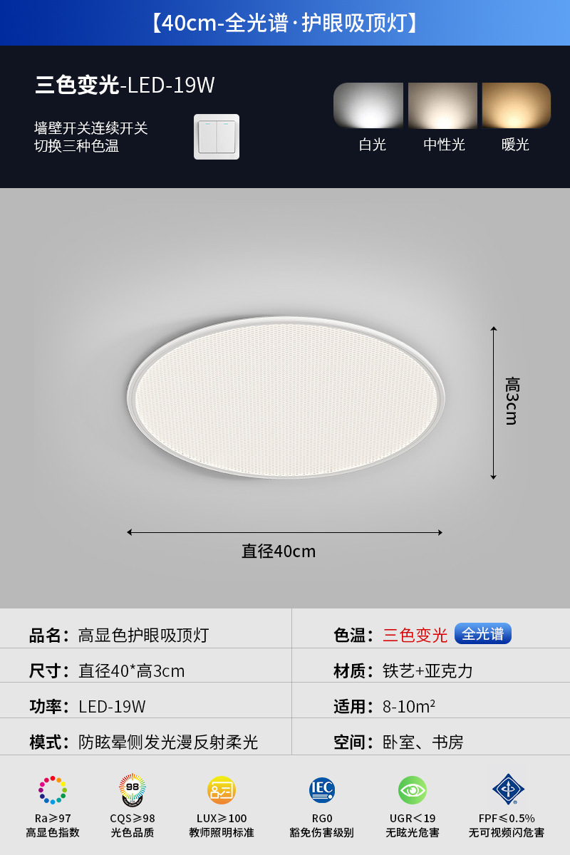 - 光源功率:【普通款】白色40CM