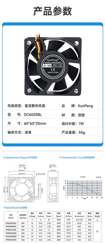 - Product Specifications: KP6025 Ball Bearing 12V
