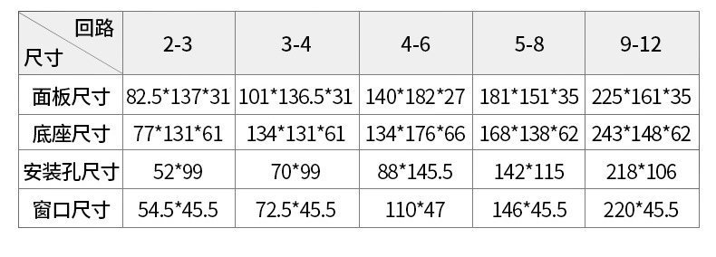 - Model: 9-12 circuits (161mmX255mmX75mm)