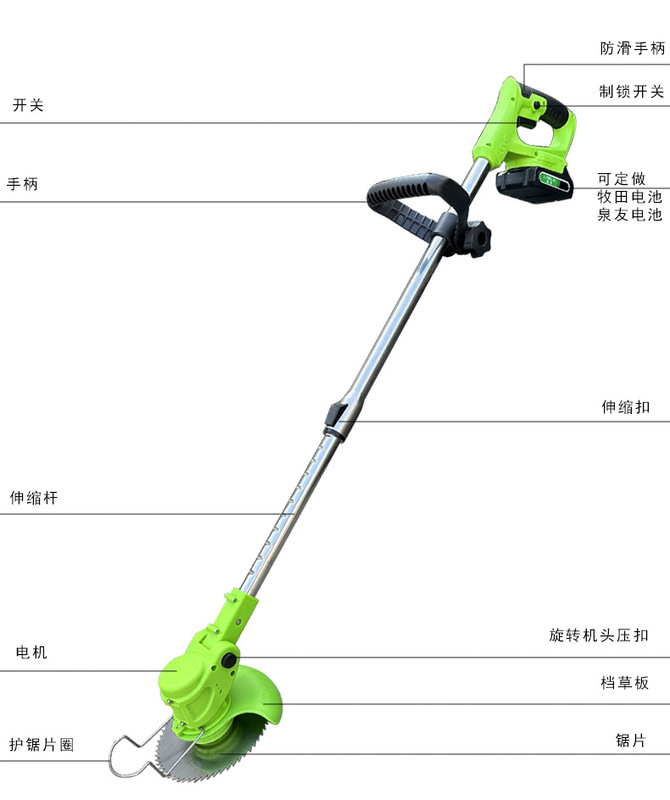 - Product specifications: 12V complete set of lawn mower, 1 large battery, 1 charger + gift