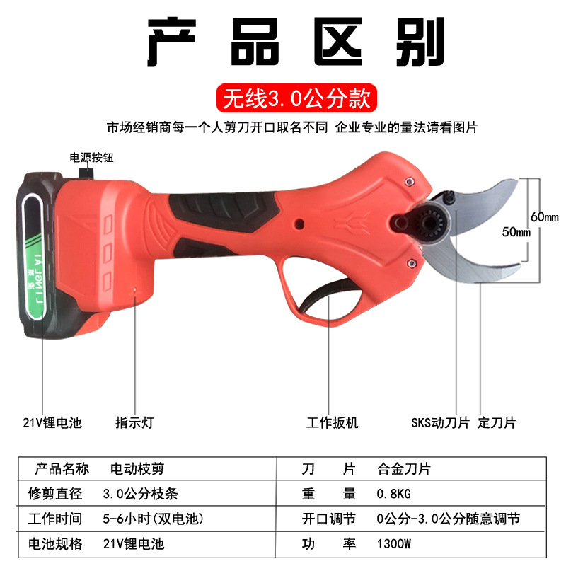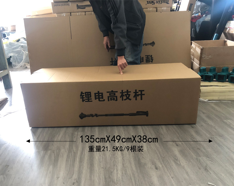 - Product specifications: high branch pole + scissors + 5 sections, 2 batteries and 1 charge