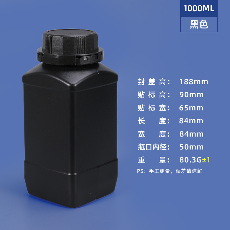 - Specification: 1L- Light-Proof Black (Wide Mouth Square Bottle)