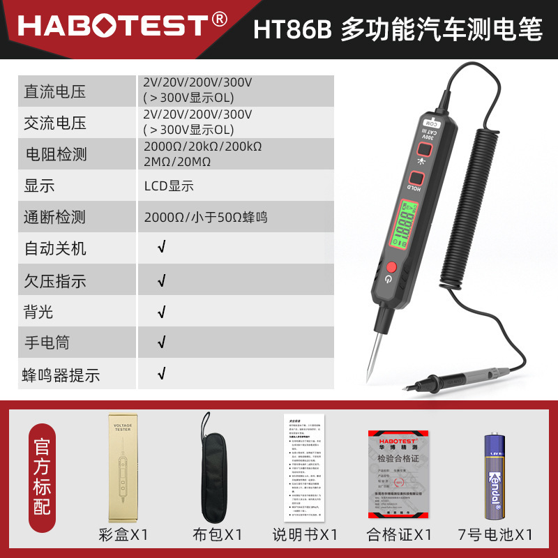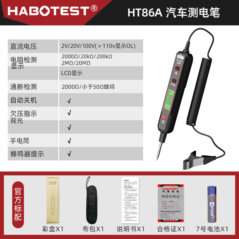 - Model: HT86A automotive circuit test pen English version