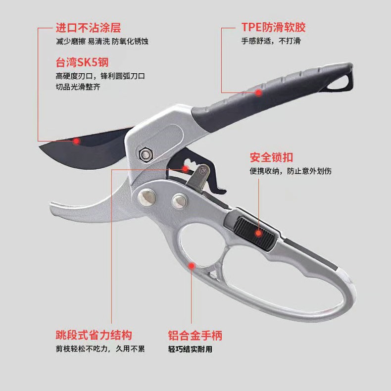 - Specifications: Stainless steel titanium plated gold blade black handle fruit pruners