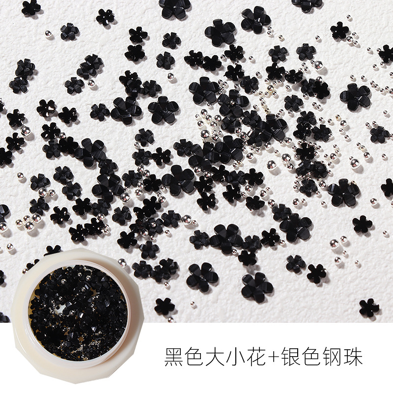 - 規格:黑色大小花+銀色鋼珠