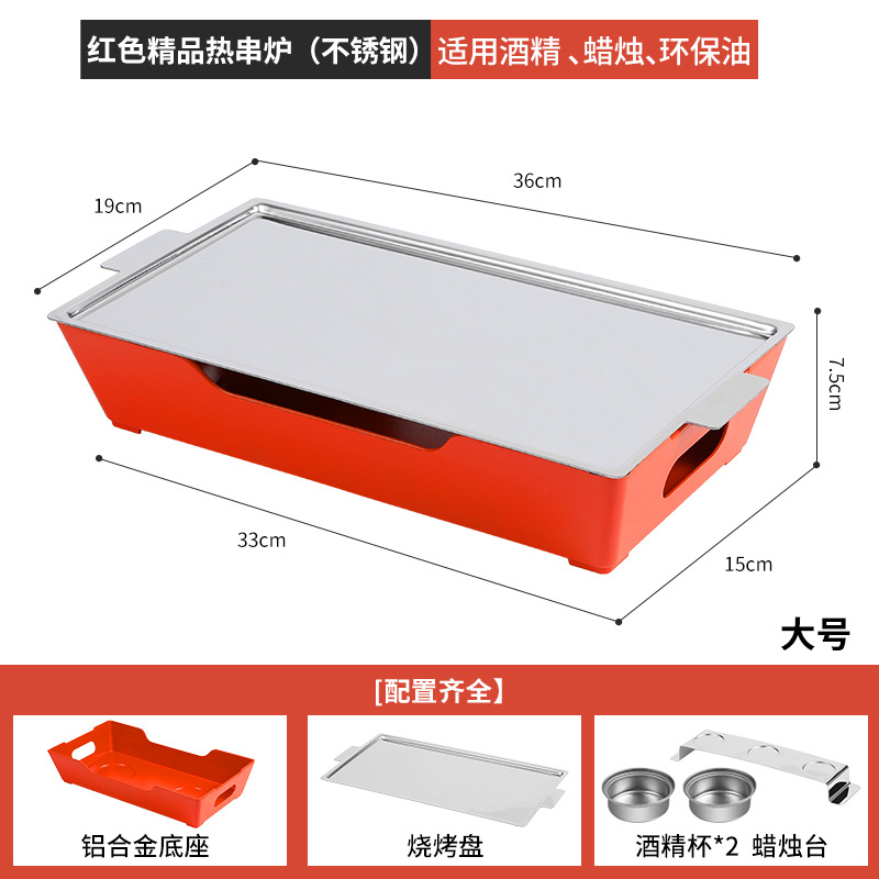 - Grill/Plate Specifications: Red Large Stainless Steel Hot Skewer Stove Alcohol.Candle