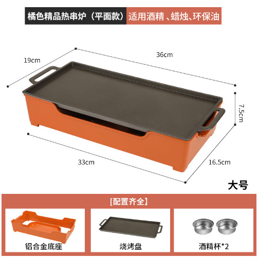 - Grill/Plate Specifications: Orange Large Flat Hot Skewer Stove Alcohol.Candle