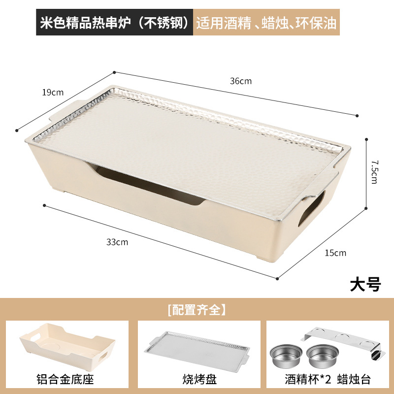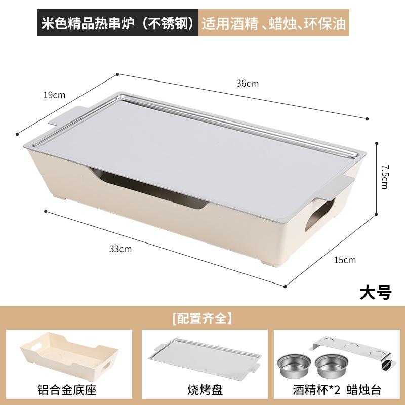 - Grill/Plate Specifications: Beige Large Stainless Steel Hot Skewer Stove Alcohol.Candle