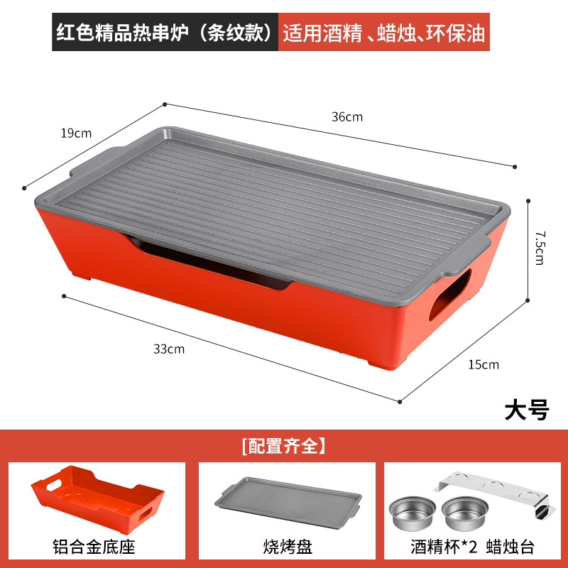 - Grill/Plate Specifications: Red Large Striped Hot Skewer Stove Alcohol.Candle