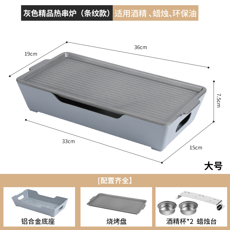- Grill/Plate Specifications: Grey Large Striped Hot Skewer Stove Alcohol.Candle