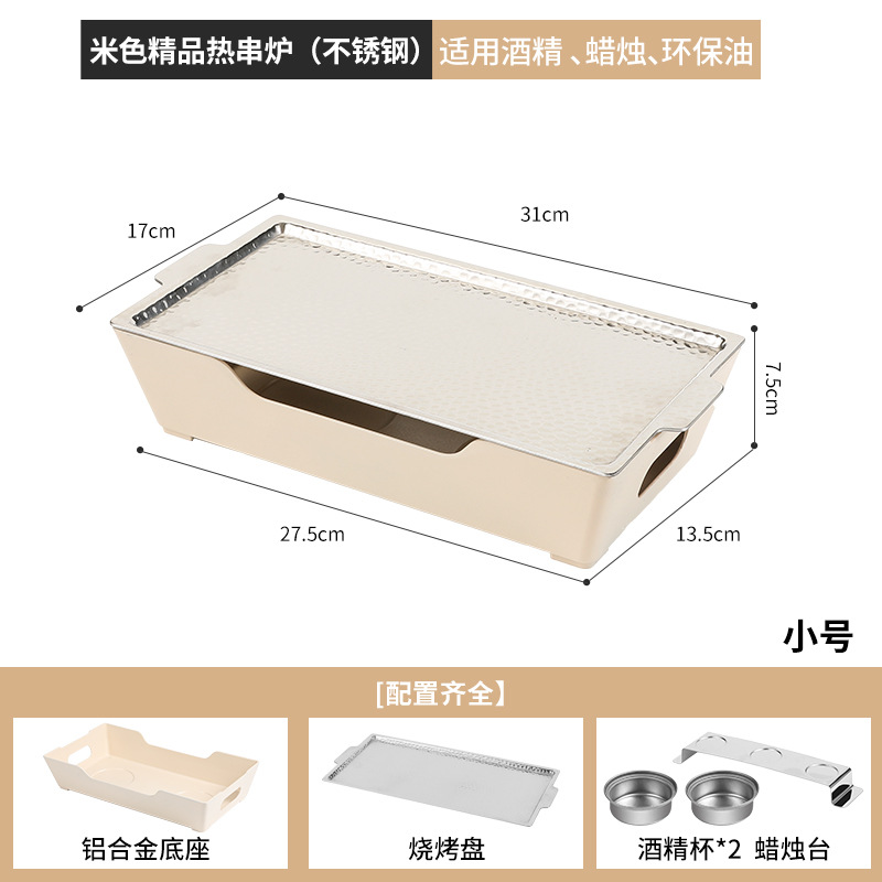 - Grill/Plate Specifications: Beige Small Stainless Steel Hot Skewer Stove Alcohol.Candle