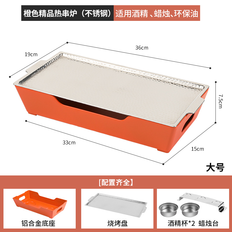 - Grill/Plate Specifications: Orange Large Stainless Steel Hot Skewer Stove Alcohol.Candle