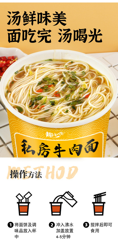 - Packaging Specifications: Beef Noodle + Chongqing Noodles, 12 Buckets Total