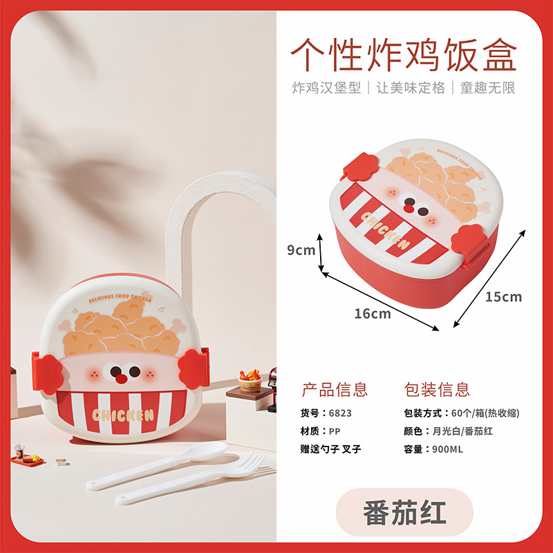 - Specification: Red Chicken Lunch Box (with Spoon and Fork)