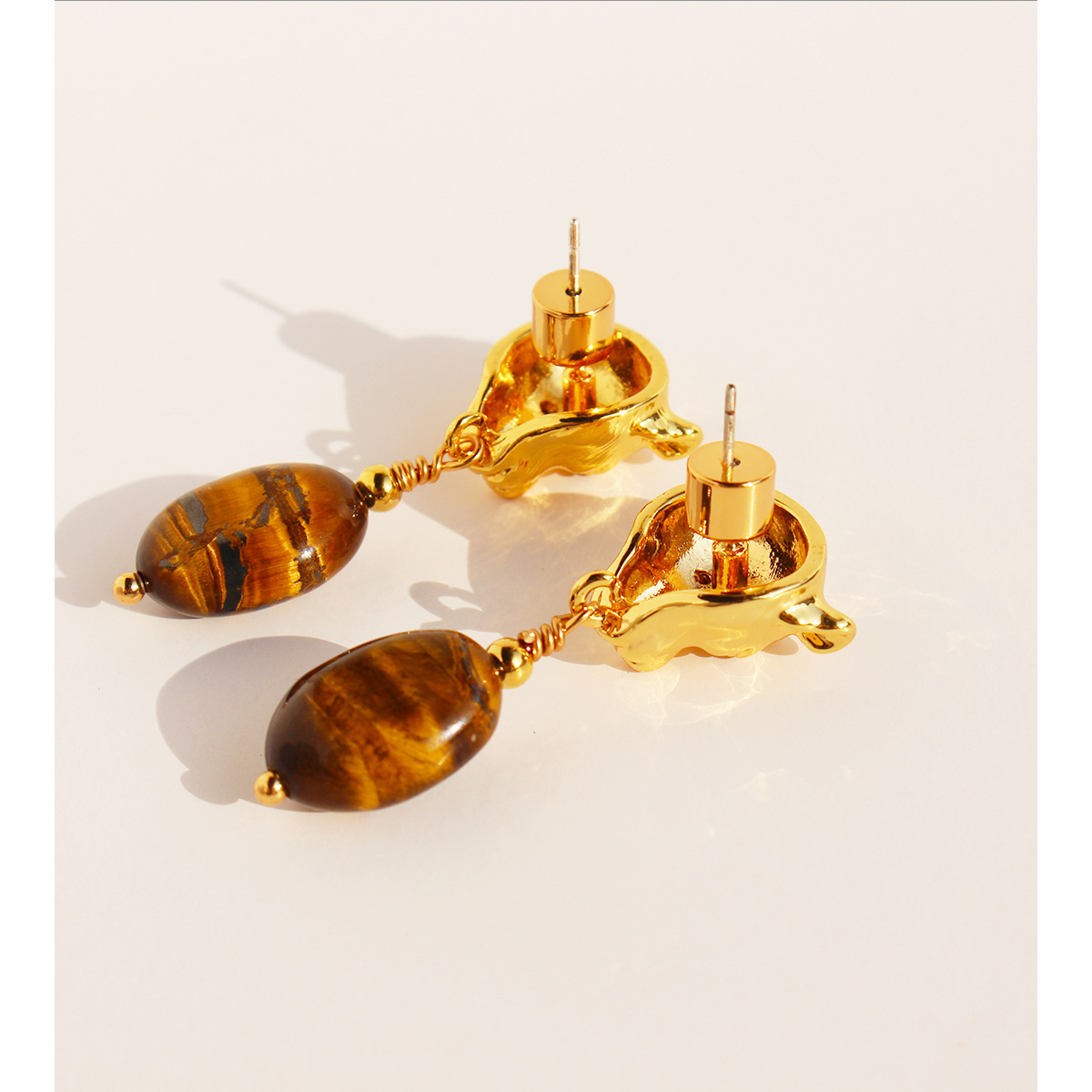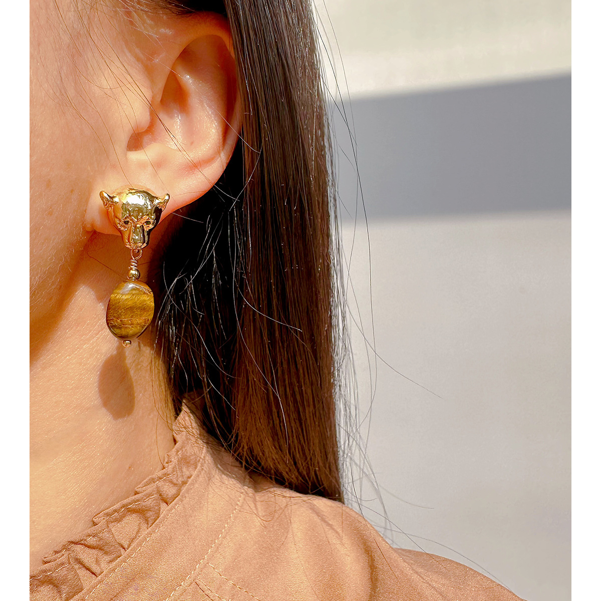 - 材質:黃銅+虎眼石+鋯石+925銀針