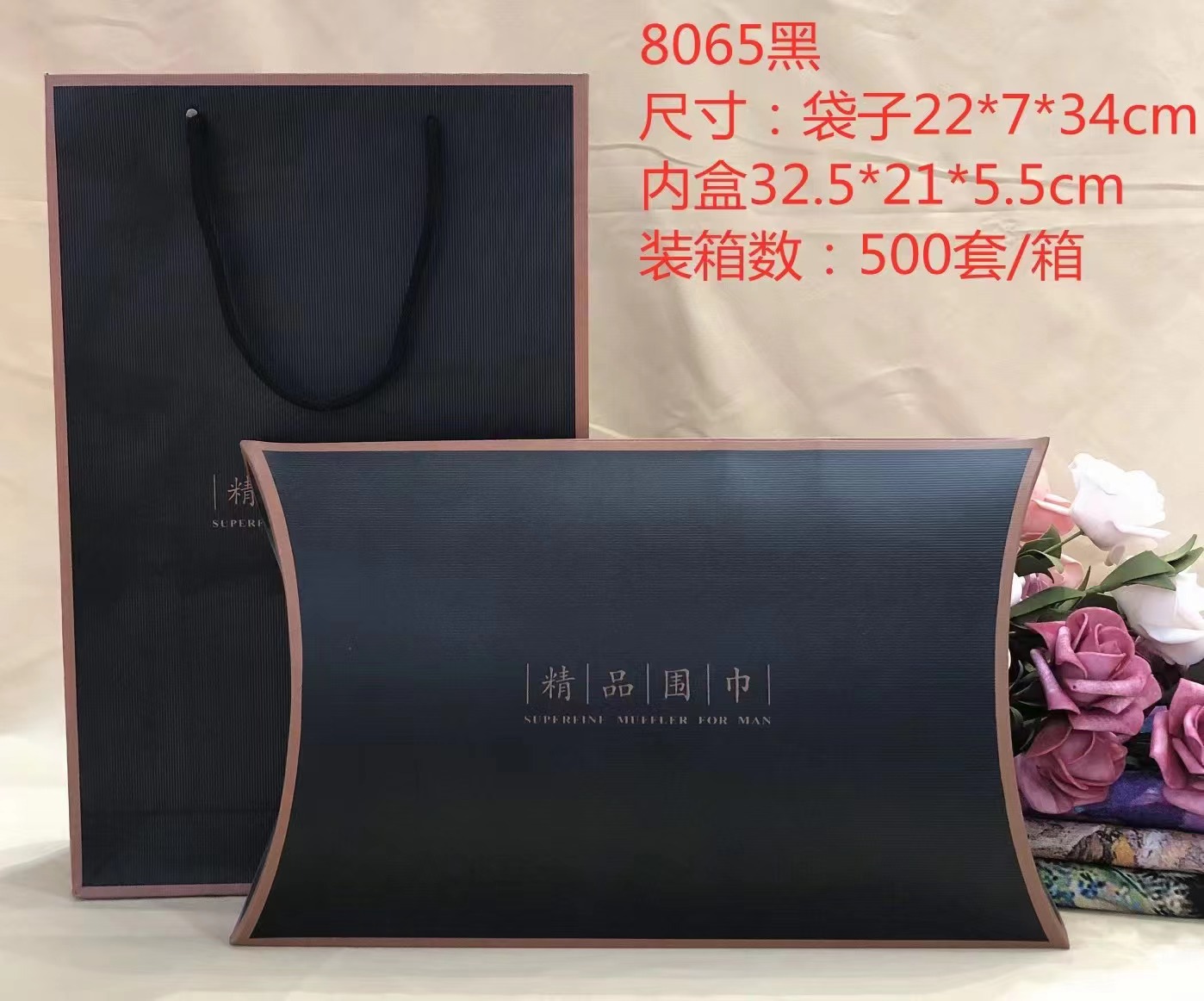 - 紙(板)材質:黑色精品圍巾套盒