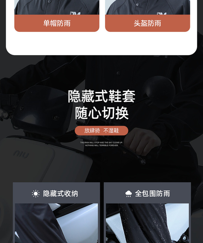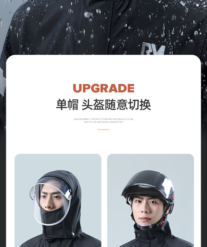 - Rain gear use: motorcycle/battery car poncho
